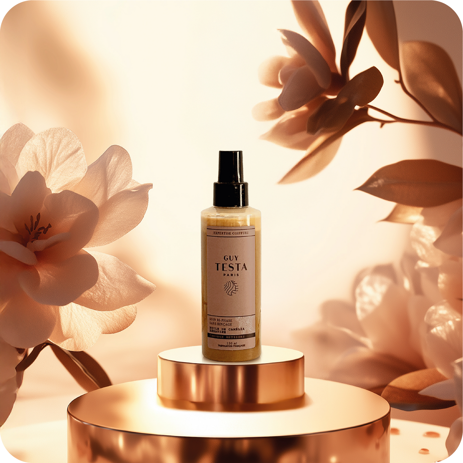 - Le soin bi-phase nourrit et protège vos longueurs.